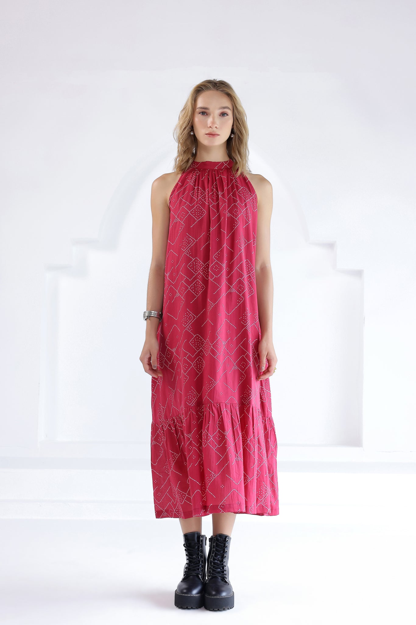 Pink Bandhej Halter Dress