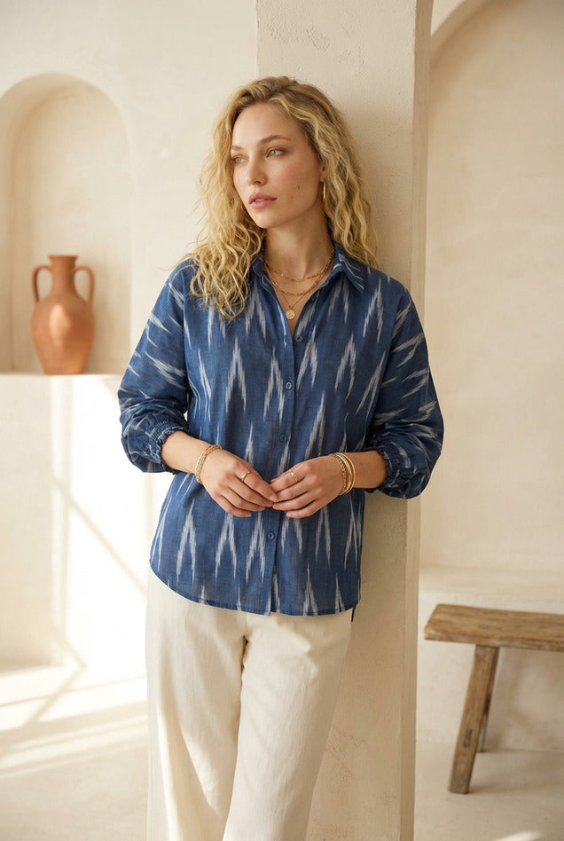 Navy Blue Ikat Relaxed Shirt