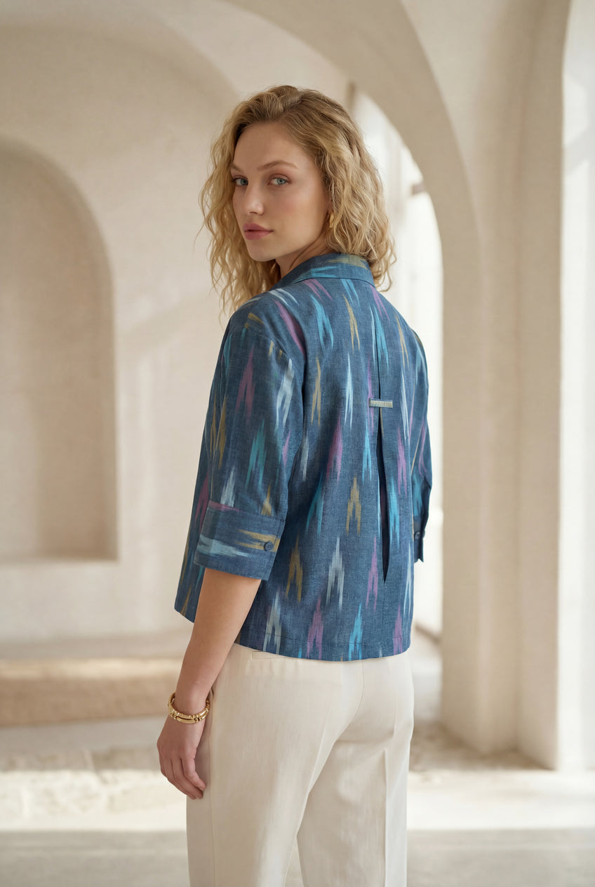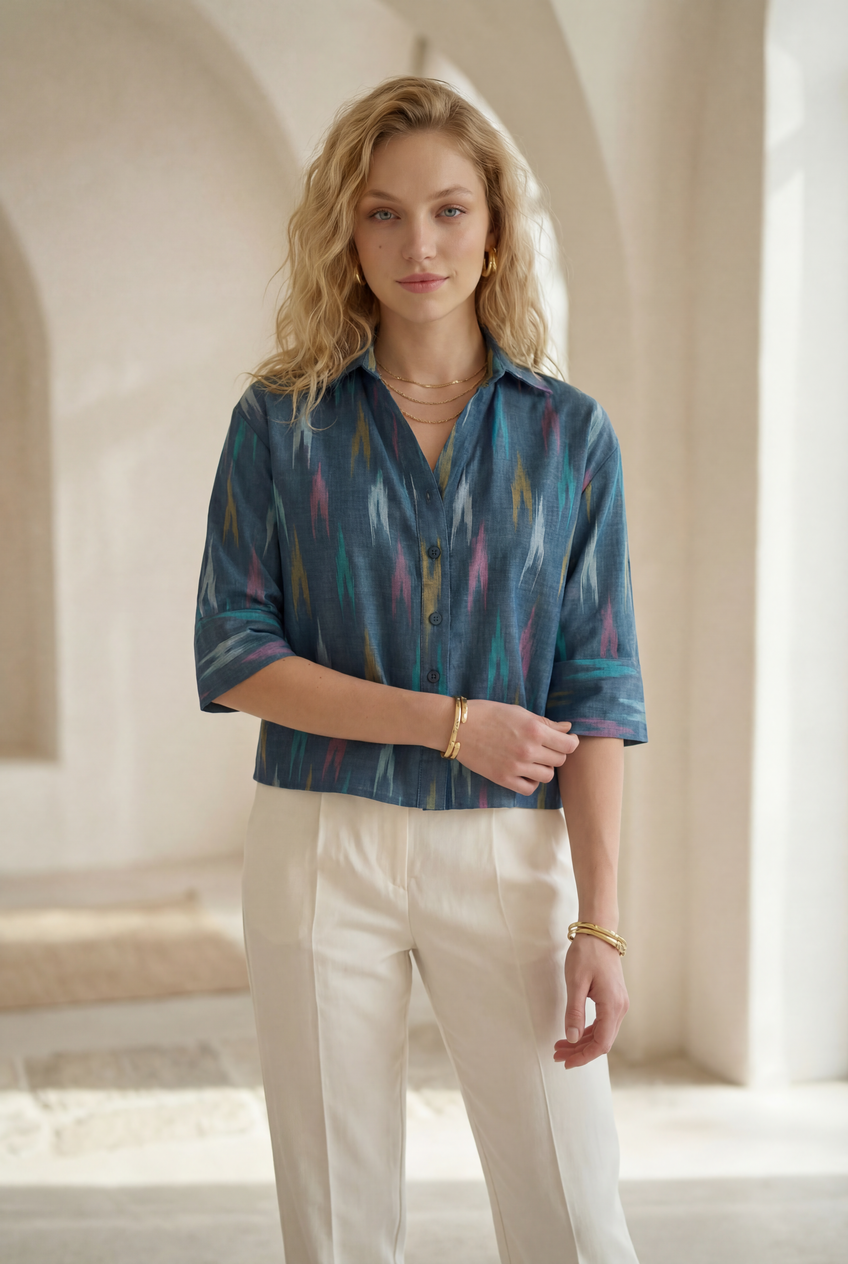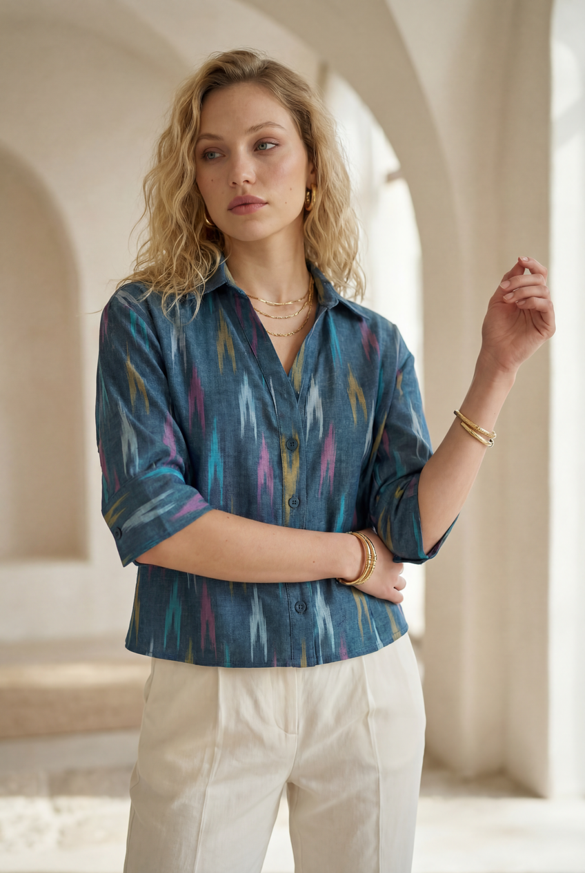 Blue Mirage Ikat Three-Quarter Sleeve Shirt