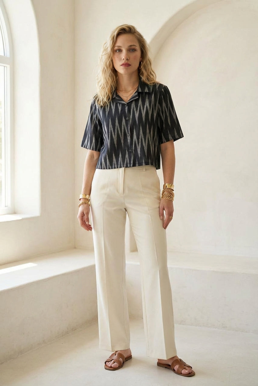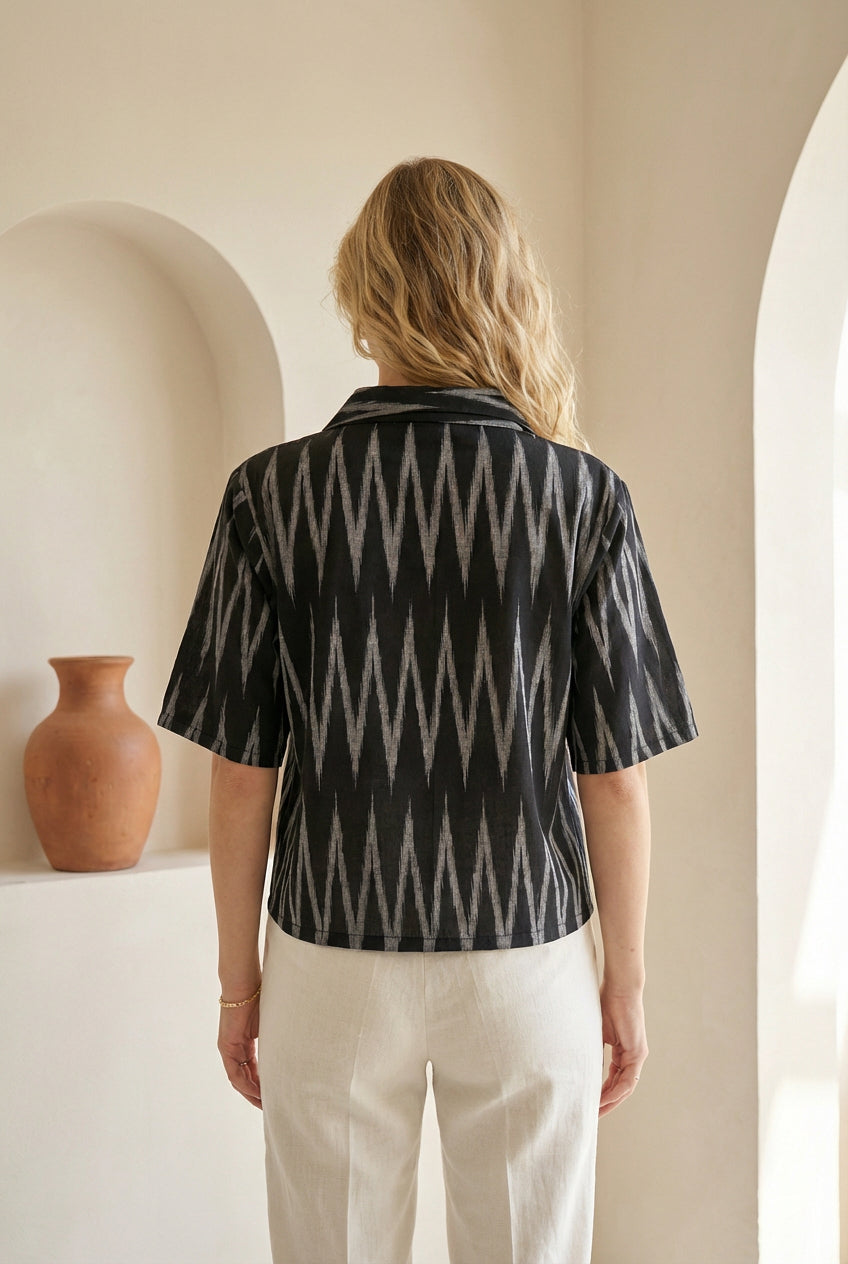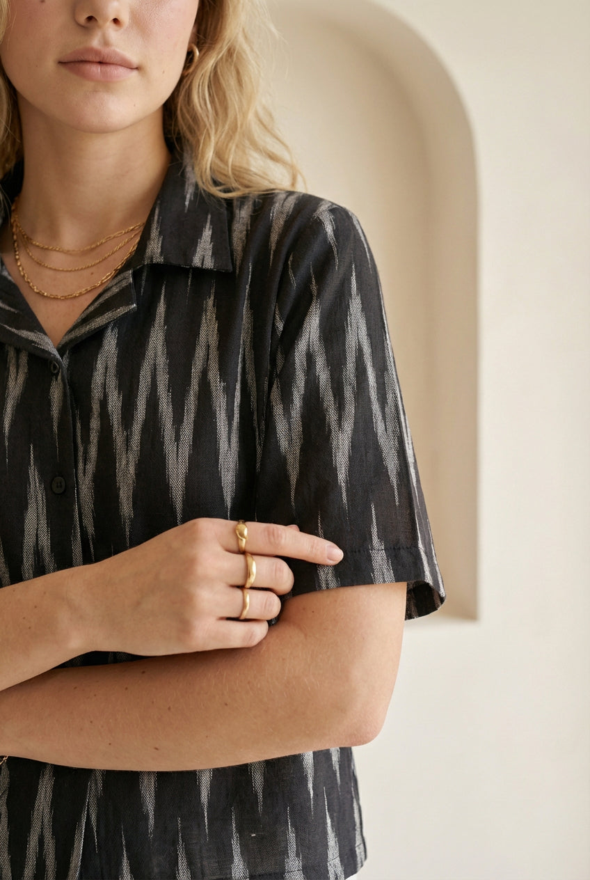 Charcoal Black Ikat Short-Sleeve Shirt