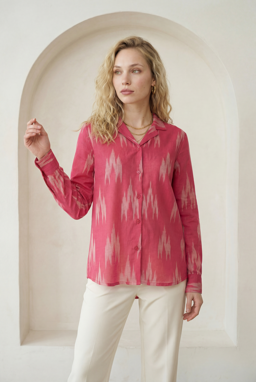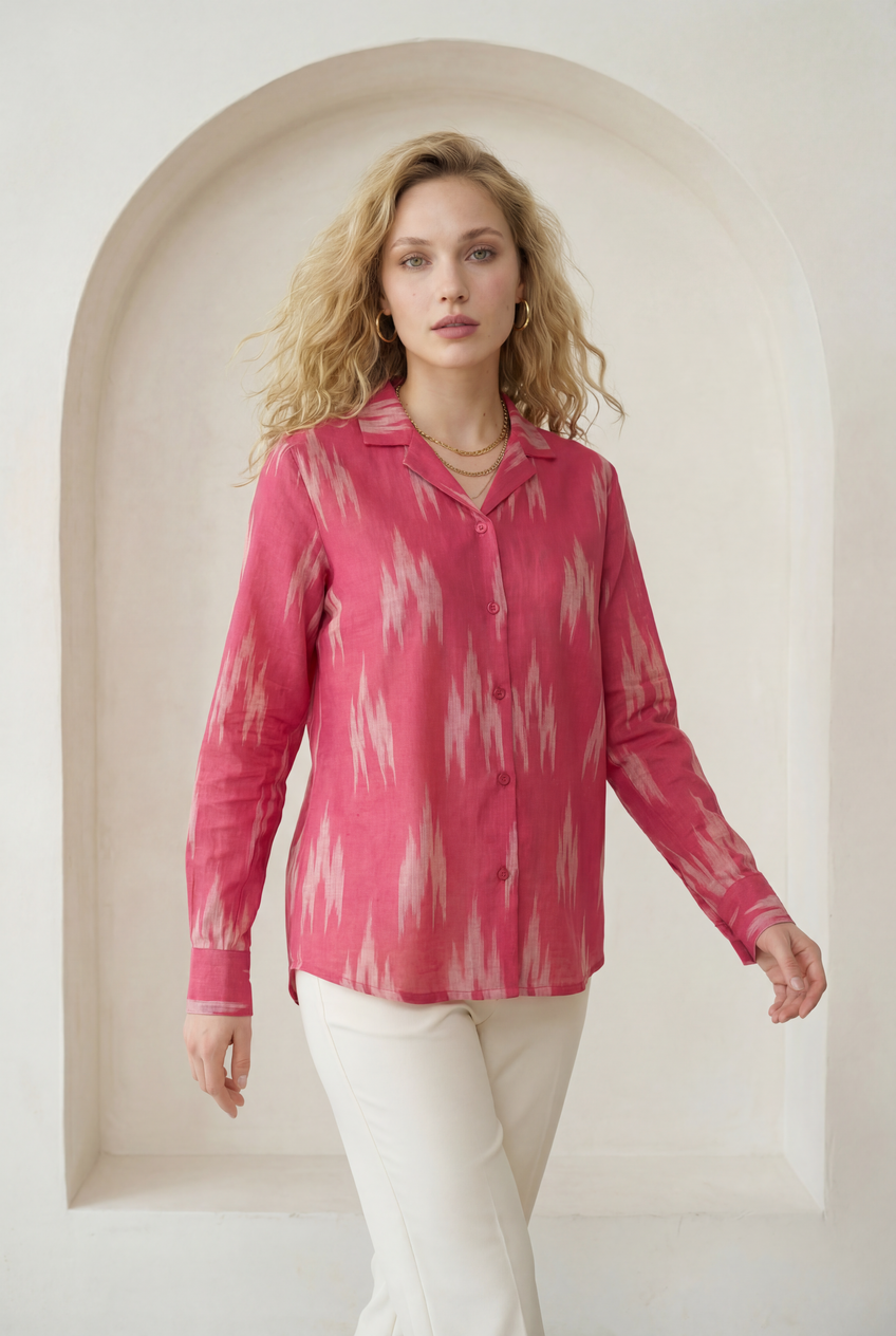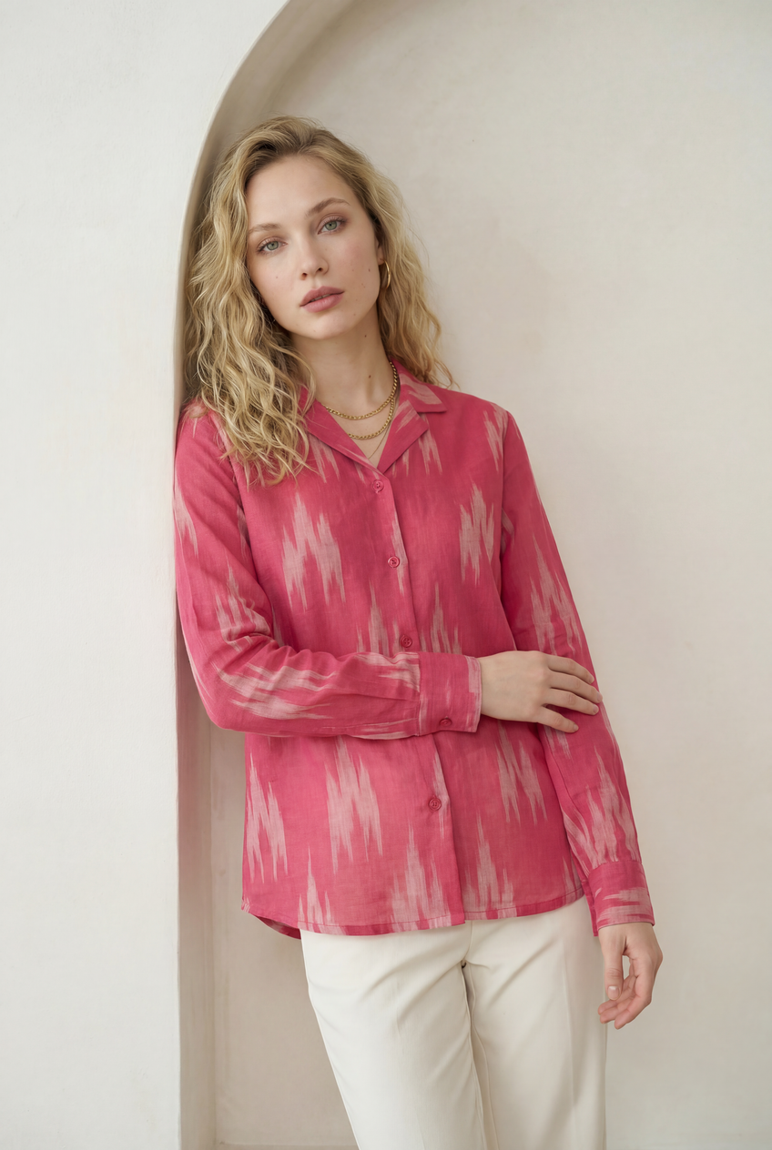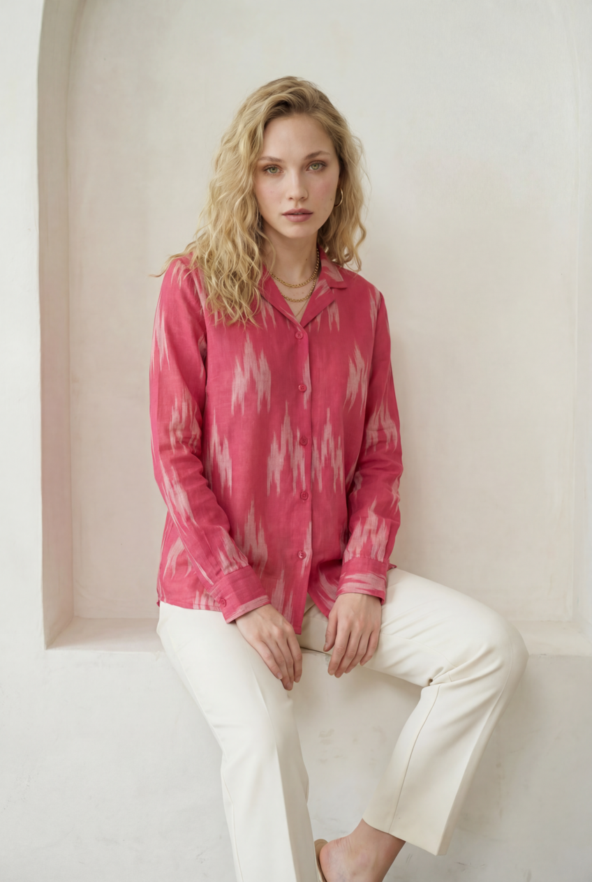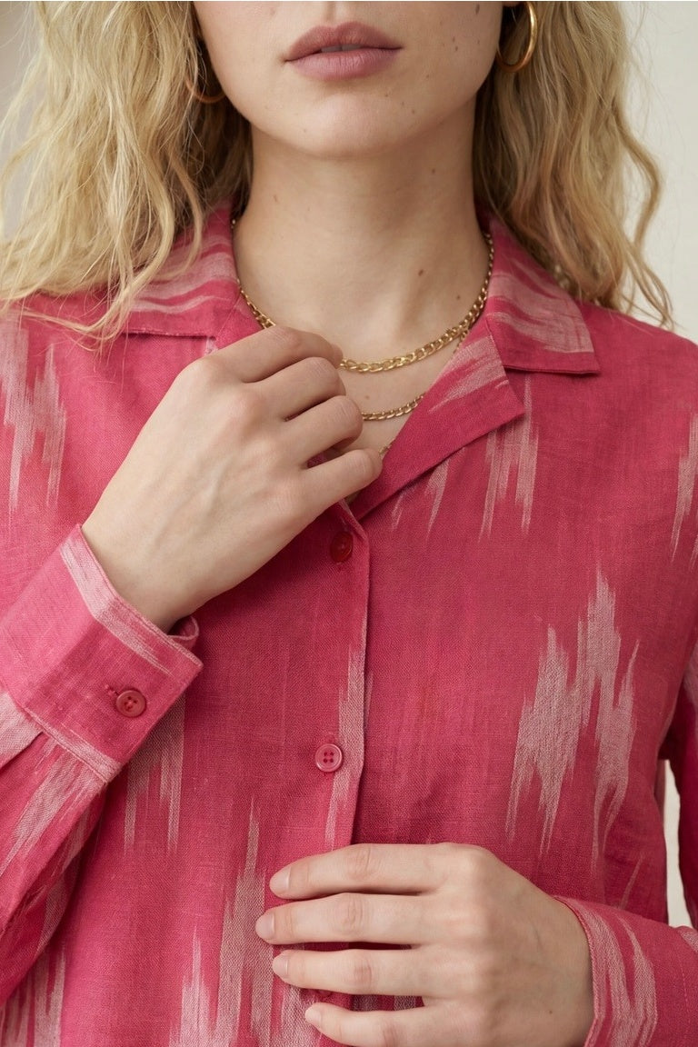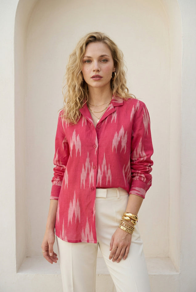 Fuchsia Pink Ikat Lapel Collared Shirt