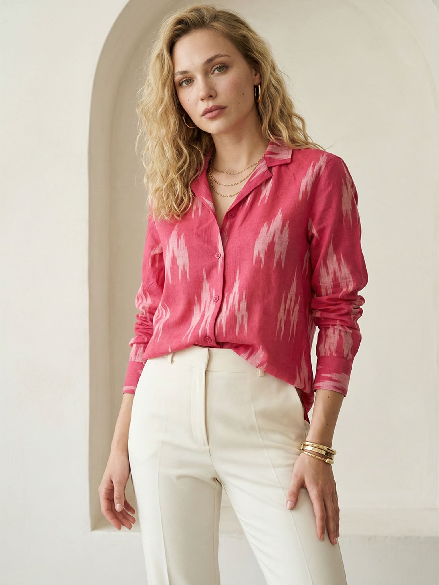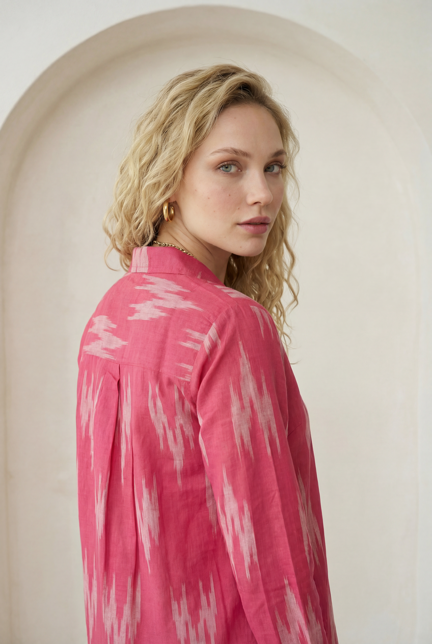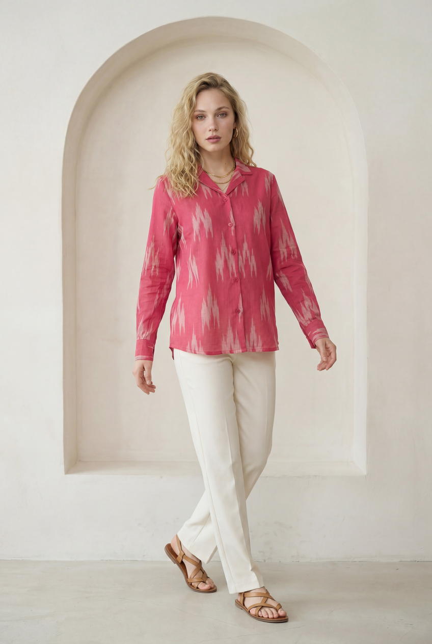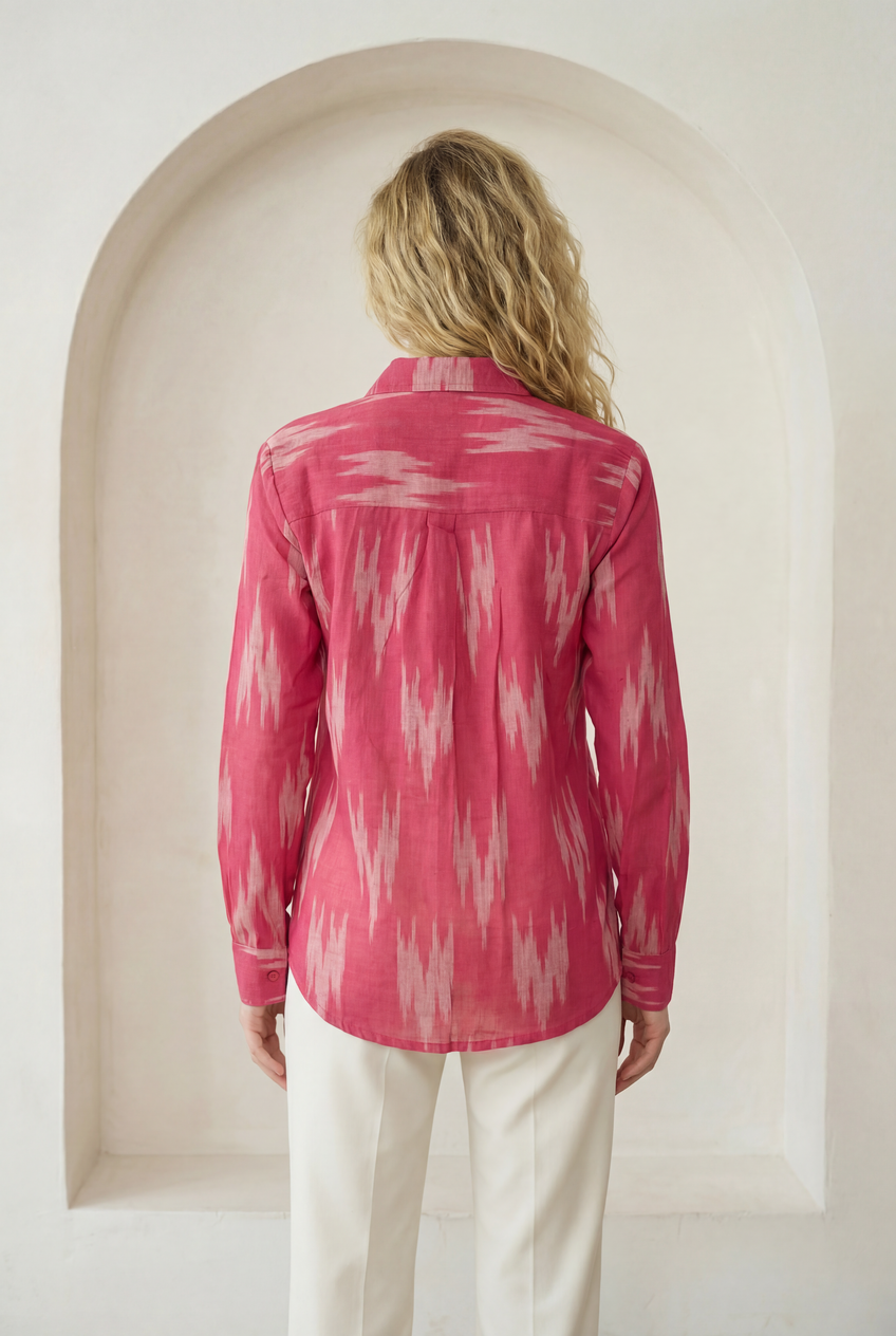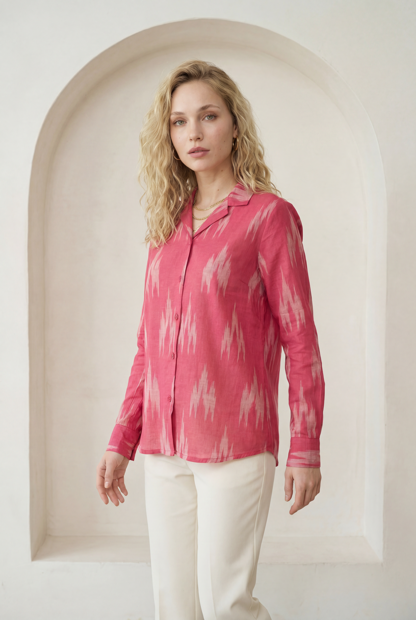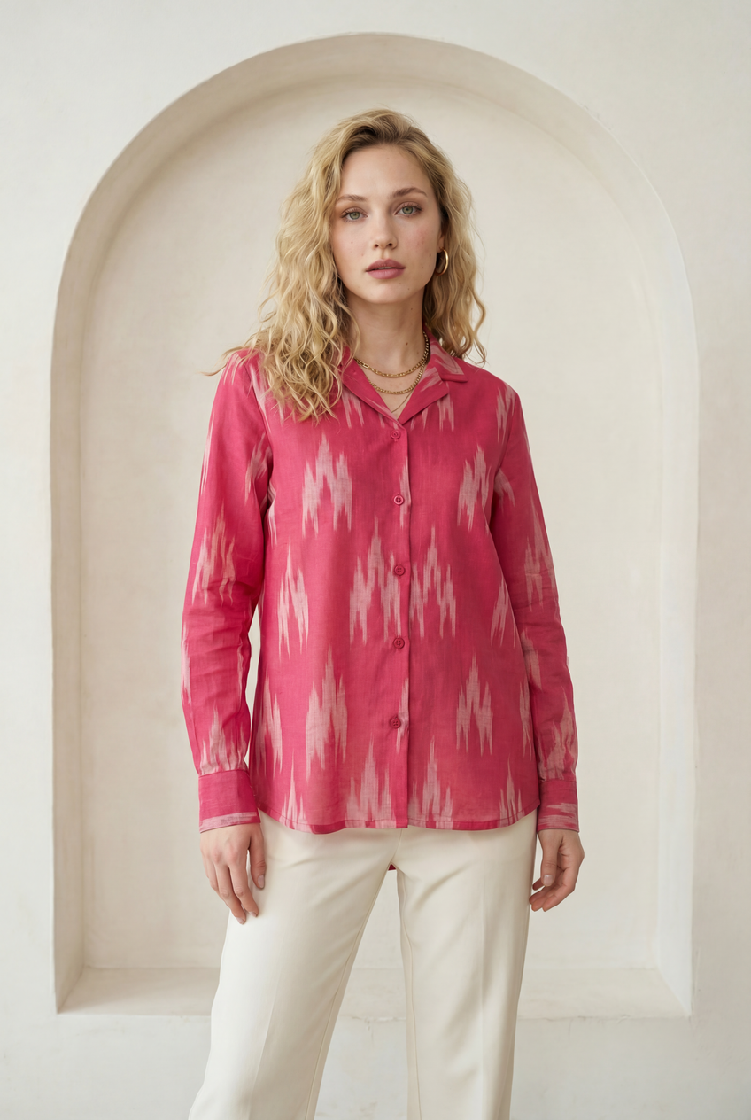 Fuchsia Pink Ikat Lapel Collared Shirt
