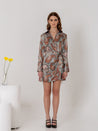 This stylish mini dress features a collared V-neckline, and buttoned cuffs. Its wrap design includes an adjustable waist tie to cinch the silhouette for a perfect fit.