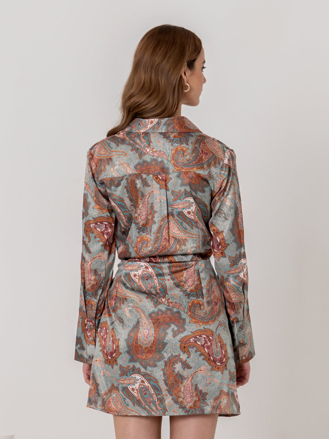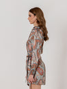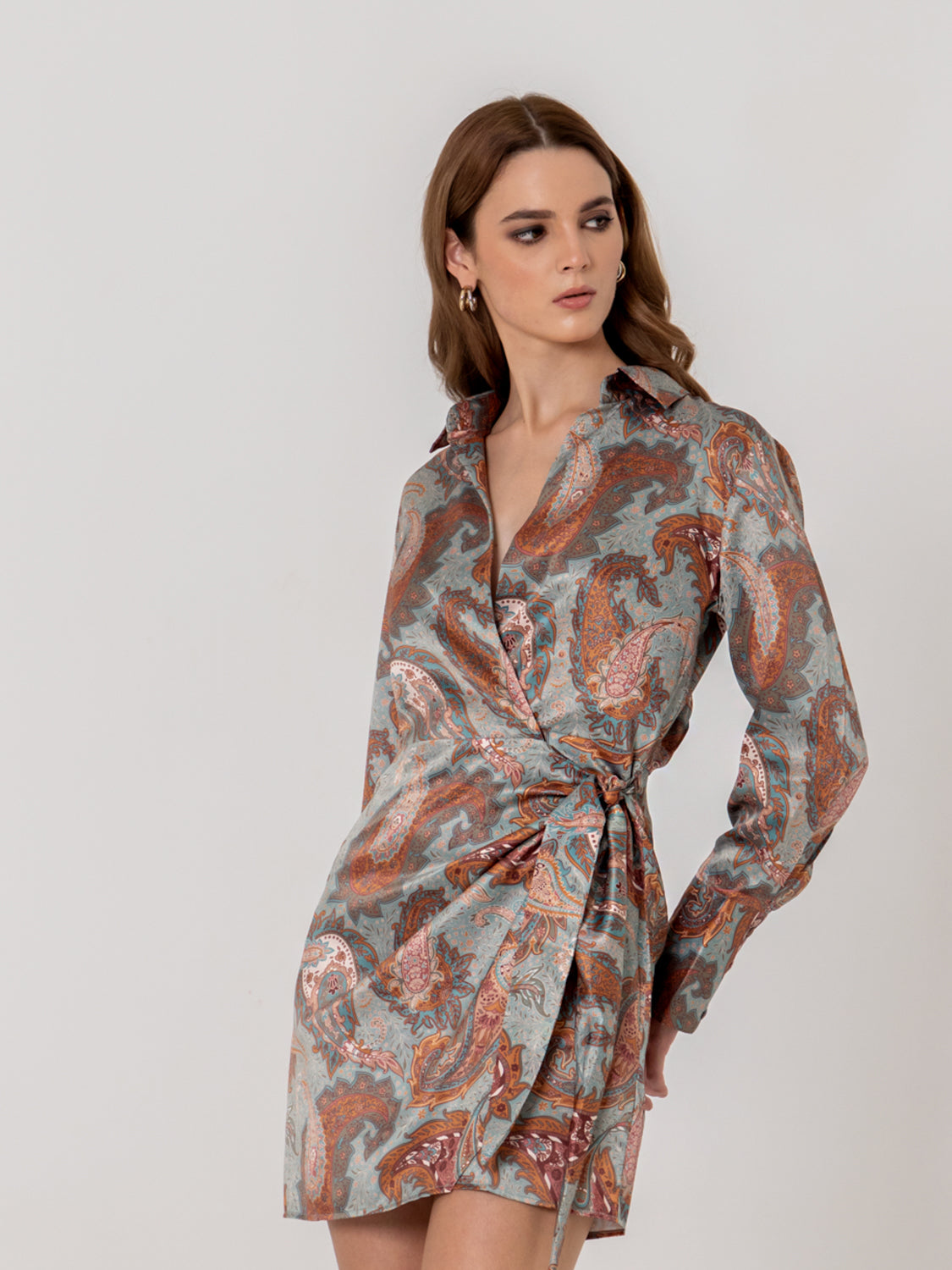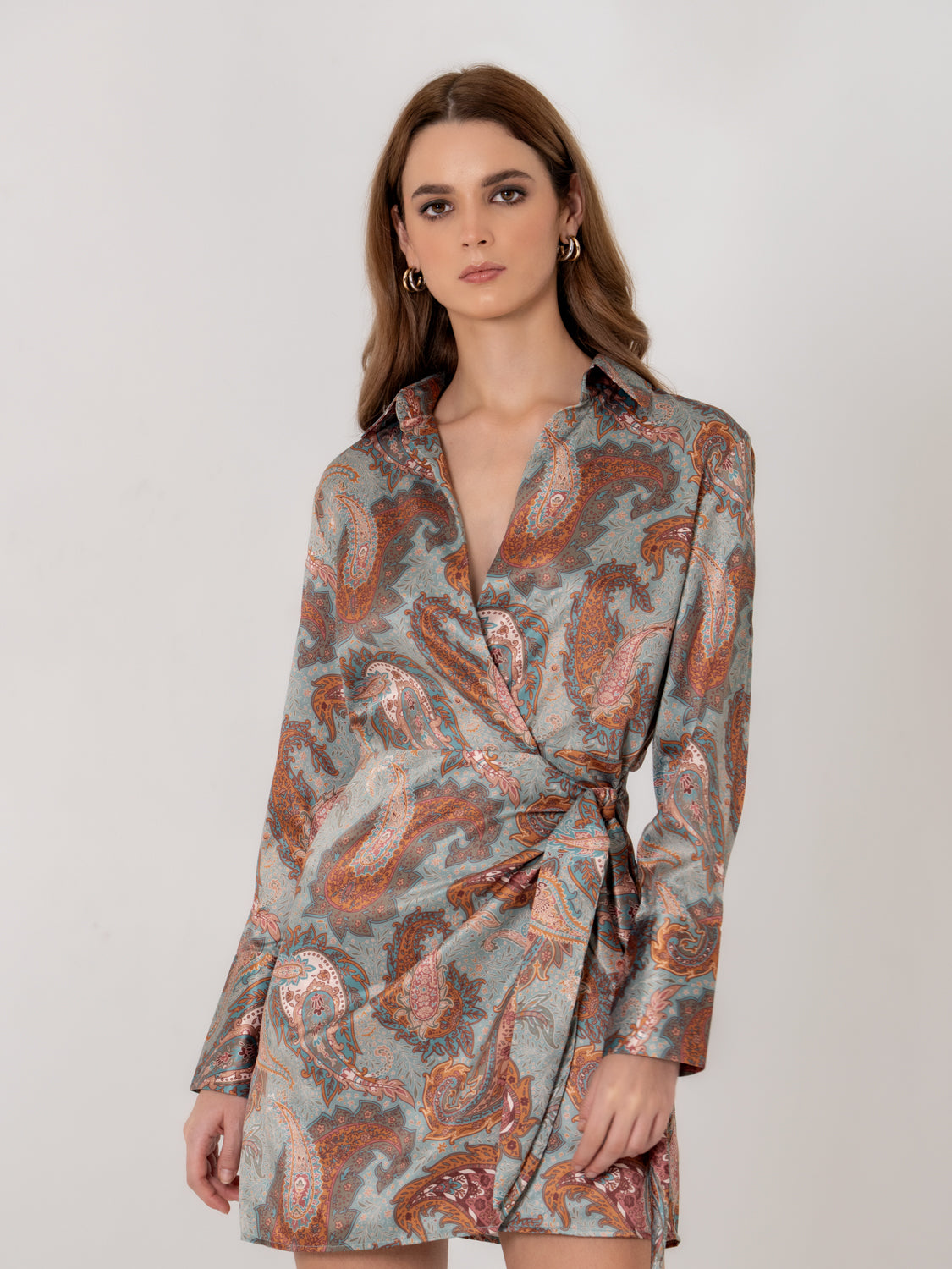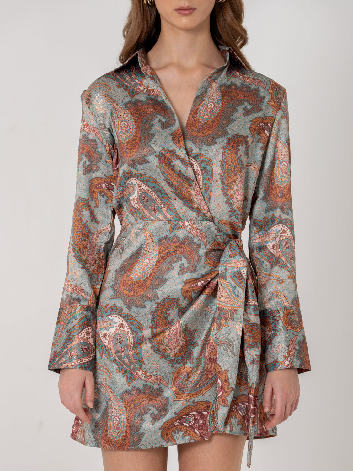 Teal Bronze Paisley Mini Wrap Dress Open image lightbox